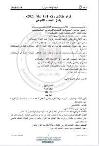 وتضمن العدد القرار بقانون رقم (8) لسنة 2021م، بشأن القضاء الشرعي، والذي بموجبه يصبح محمود الهباش مستشار الرئيس محمود عباس للشؤون الدينية، والذي عينه في السابق قاضي قضاة “بدرجة وزير”، رئيسا لمجلس القضاء الشرعي، وبدرجة رئيس المحكمة العليا الشرعية.