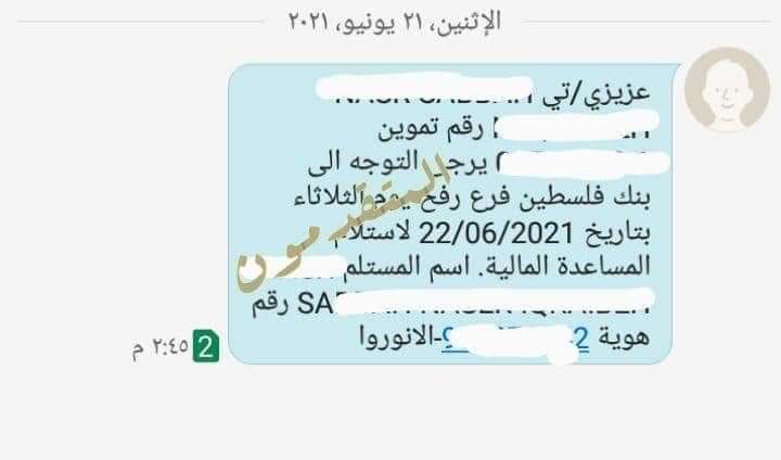 #الأونروا بغزة تُرسل رسائل للأسر الفقيرة في قطاع غزة؛ لاستلام مساعدة مالية، ضمن مساعدات الأونروا السنوية، بقيمة 150 دولار