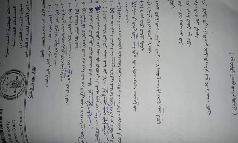 حل نماذج الأحوال الشخصية سؤال الصح والخطأ من ملزمة التلولي ورجوعي للكود