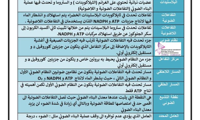 اضع بين ايديكم طلابنا الأعزاء كراسة المراجعة الشاملة لمادة الأحياء .. .