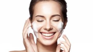 1) تنظيف الوجه: اختيار غسول للبشرة لا يجعلها مشدودة بعد التنظيف.