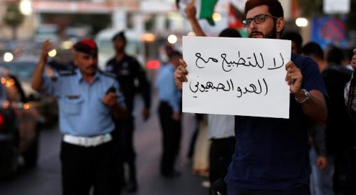 ورفع المشاركون لافتات منها: “التطبيع خيانة”، و”التاريخ لن يرحم المطبعين”، و”القدس تناديكم”.