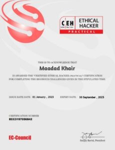 معضاد خير يحصل على شهادة الهاكر الأخلاقي المعترف بها عالمياً