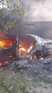 انتشال شــهـــيـــدين من مركبة بعد قصف الاحتلال لها شرق القرارة شرق خانيونس جنوب قطاع غزة".