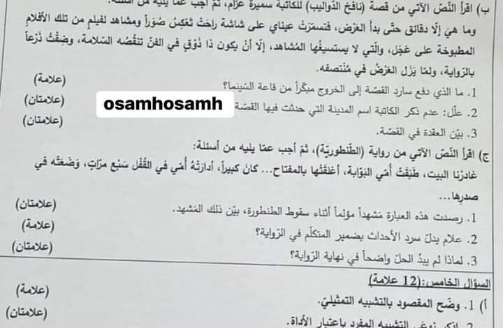 امتحان اليوم امتحان اللغة العربية الوزاري الجلسة الثانية 2023 #الورقة_الثانية