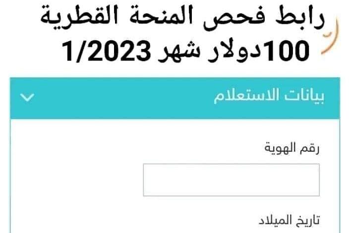 رابط فحص المنحة القطرية 100 دولار الان برقم الهوية الدفعة الجديدة 100 الف مستفيد