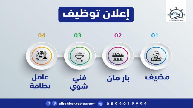 يعلن مطعم ومسمكة البحار عن توفر عدة شواغر وظيفية:-