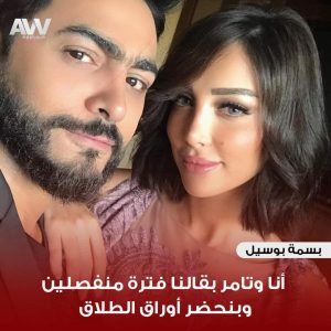 وكانت الفنانة بسمة بوسيل قد أعلنت مؤخرا انفصالها عن زوجها تامر حسني، على خاصية “ستوري” بموقع “انستجرام”.